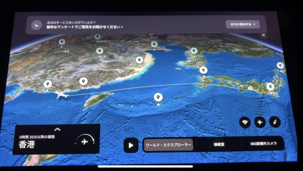 離陸から約4時間ほどで香港へ到着。